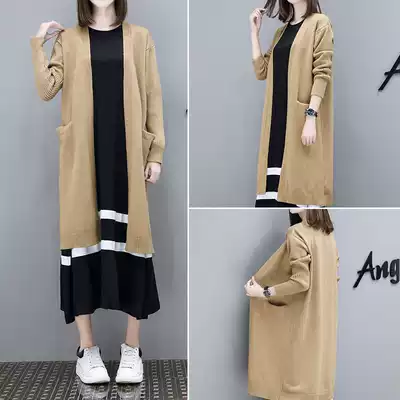 Pregnant women autumn dress long version 2021 tide Hot Mom personality foreign school out fashion autumn coat two-piece suit
