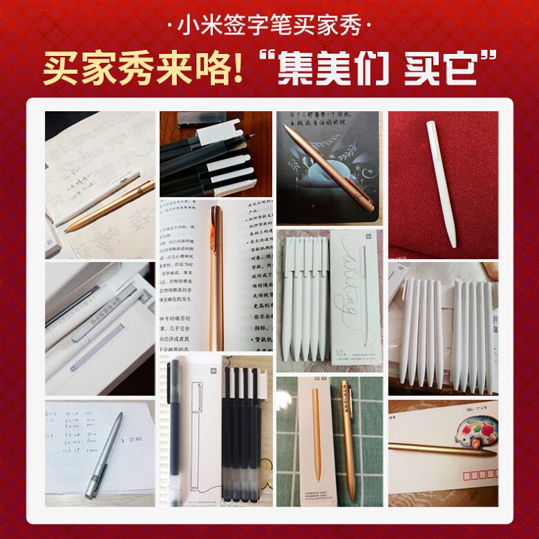 Xiaomi Giant Can Write Mid Character Pen Rice Home Sign Pen Color Red Black 0 5mm Subwarhead Cartridge Speed Dry Student Stationery Exam Large Capacity Colored Pen Ball Pen Replacement 10 Loaded Red Pen