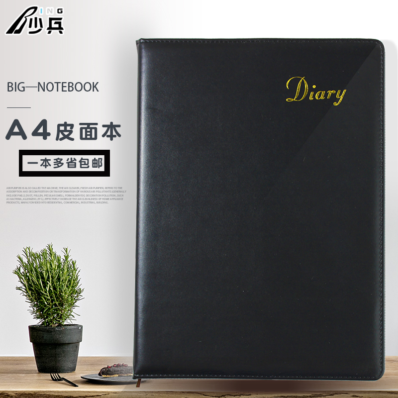 Large A4 custom notebook stationery notepad thickened college student diary office Student business simple black hand ledger Large leather work conference office printable logo
