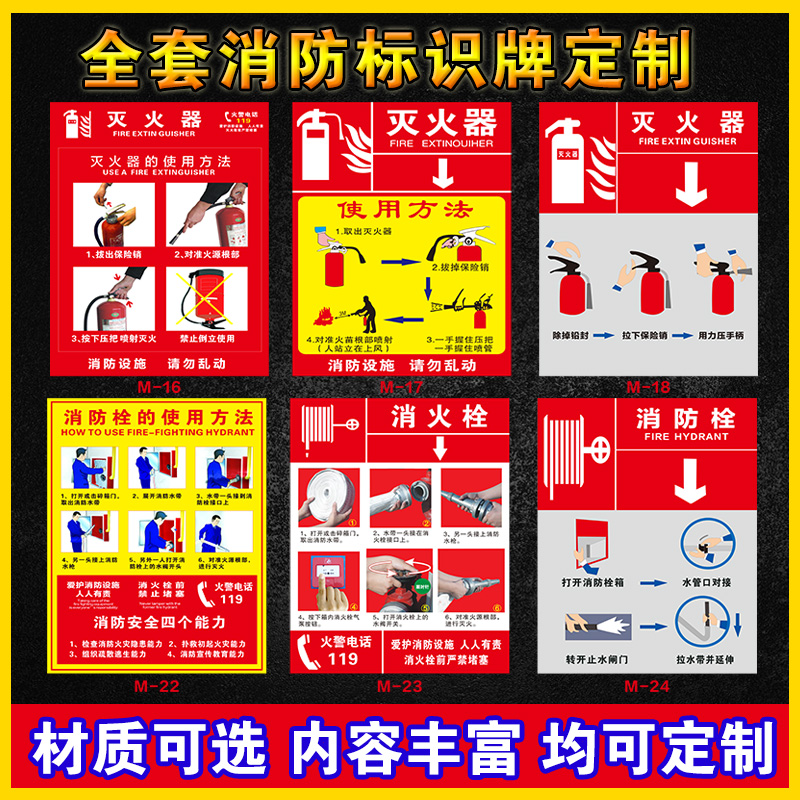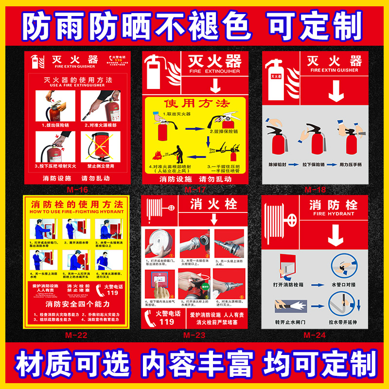 Fire equipment, fire hydrants, fire extinguishers, placement points, instructions, methods, signs, signs, PVC signs, fire stickers, warning signs, stickers, factory inspection signs, custom-made