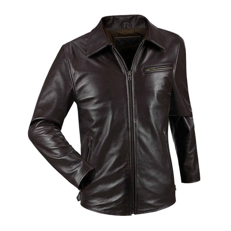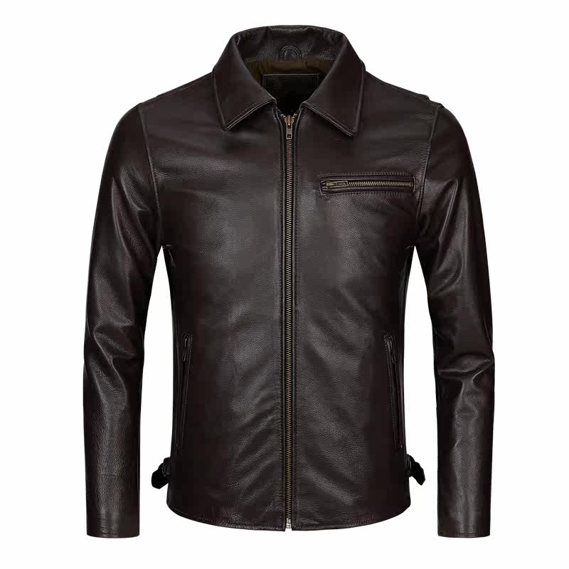 Ammerclick retro locomotive leather clothes men's turned leather fur coat men's body short head layer of cow leather leather jacket