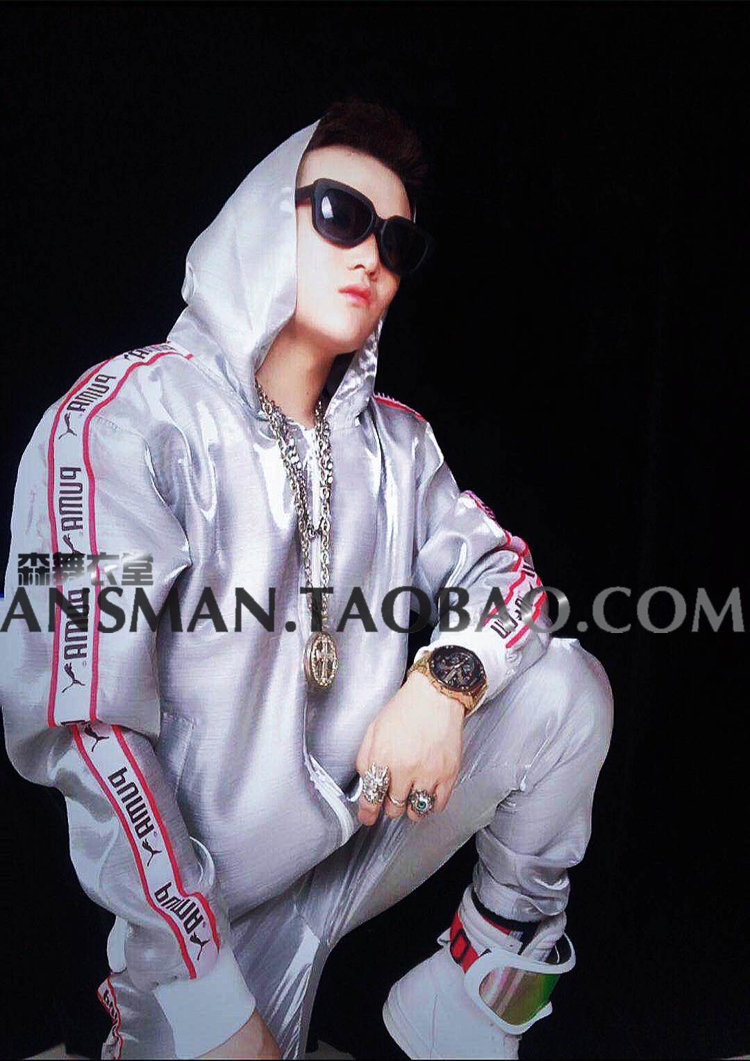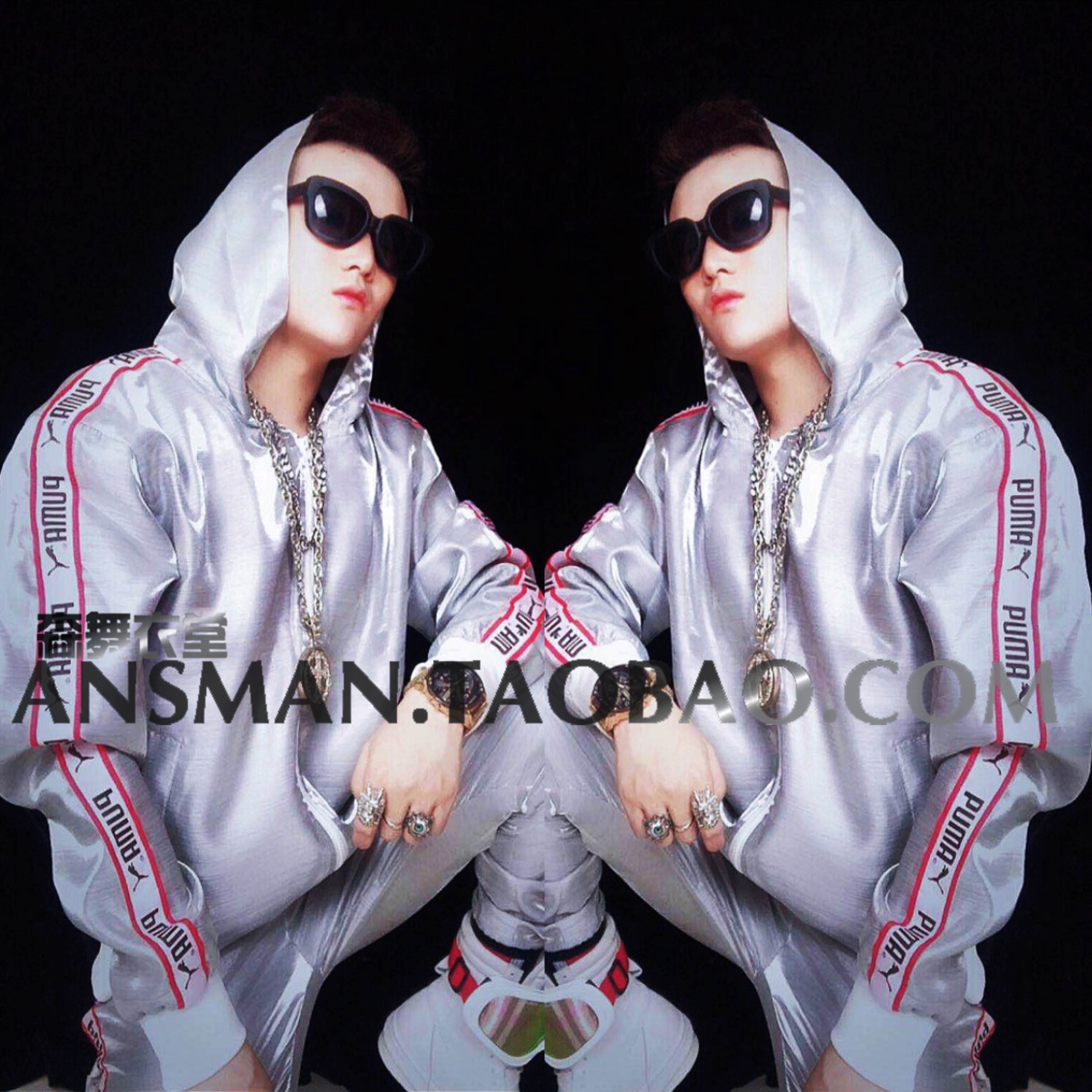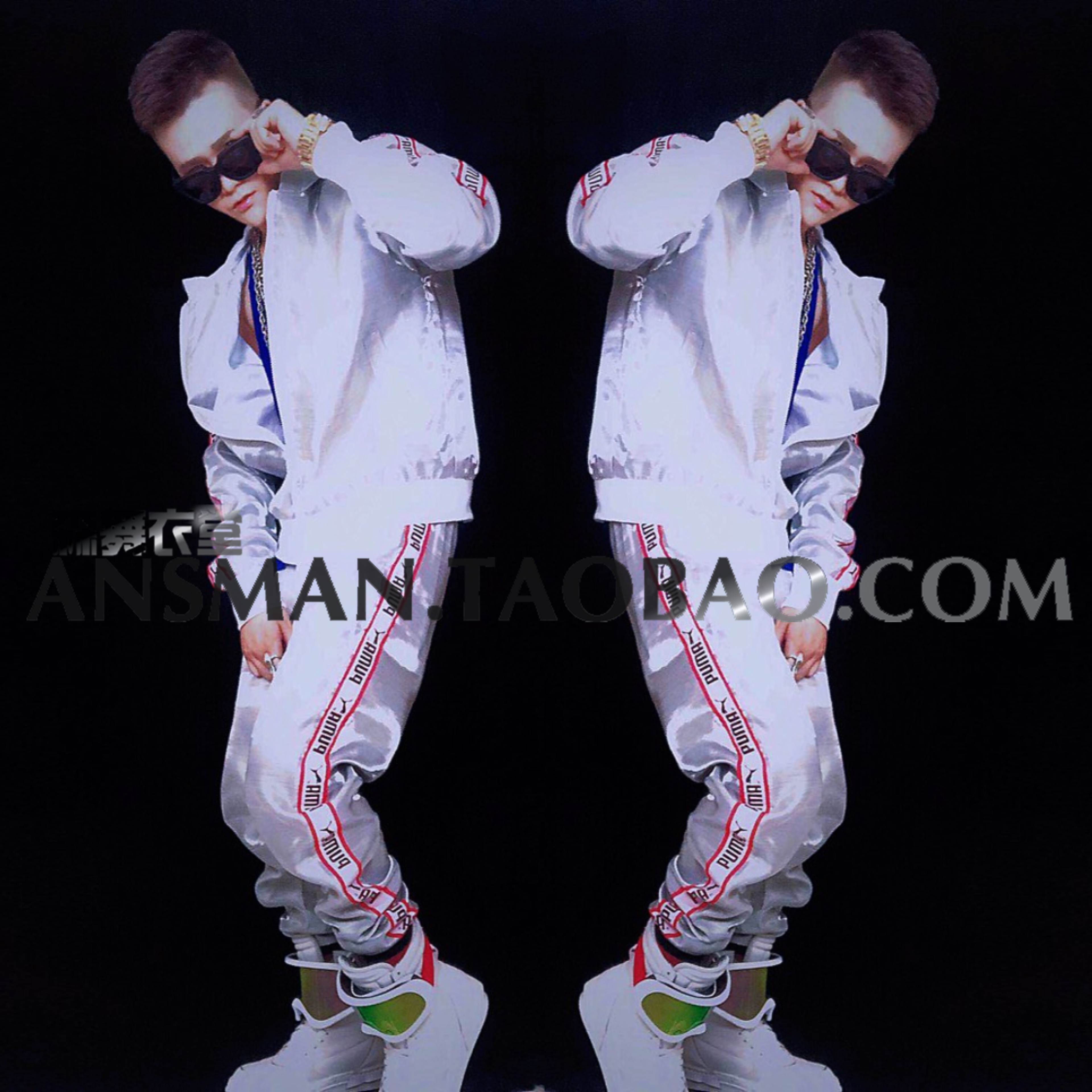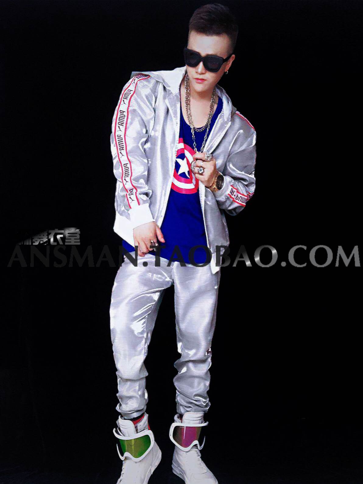 Nightclub bar DJ male singer DS GOGO Tide brand magic color silver white hip-hop baseball uniform costume suit male
