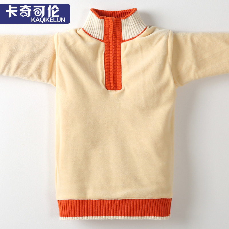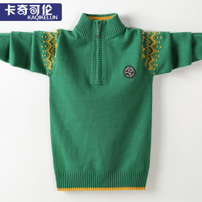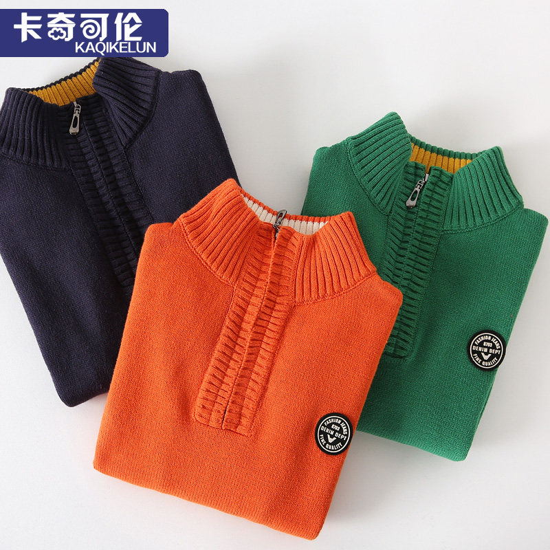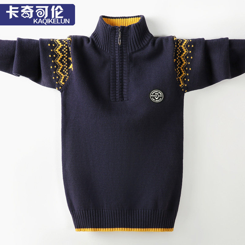Boy sweater pullover high collar Middle Child plus velvet thickened sanitary clothing autumn and winter children's sweater zipper boy tide