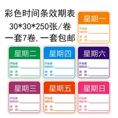 Color time bar validity table Hotel dining room kitchen food management Week label seven days sticker stickers