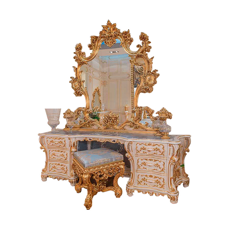 Eurostyle Makeup Bench Luxury Sculpture Flower Makeup Bench Bedroom Style Extravaganza Palace Princess Makeup Table Villa Furniture Custom