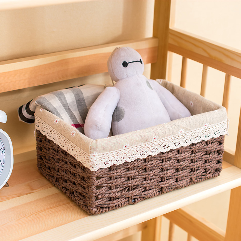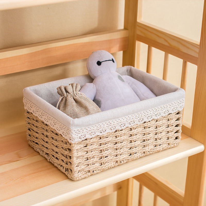 Grass-weaving basket weaving and tabletop snack collection box vine fabric finishing basket bedroom storage box