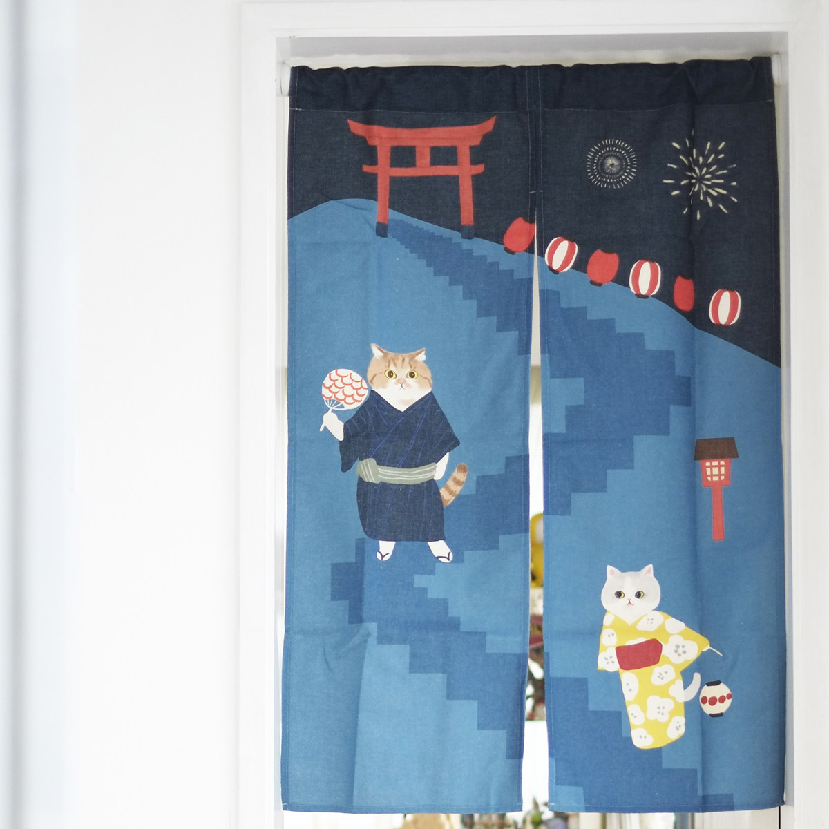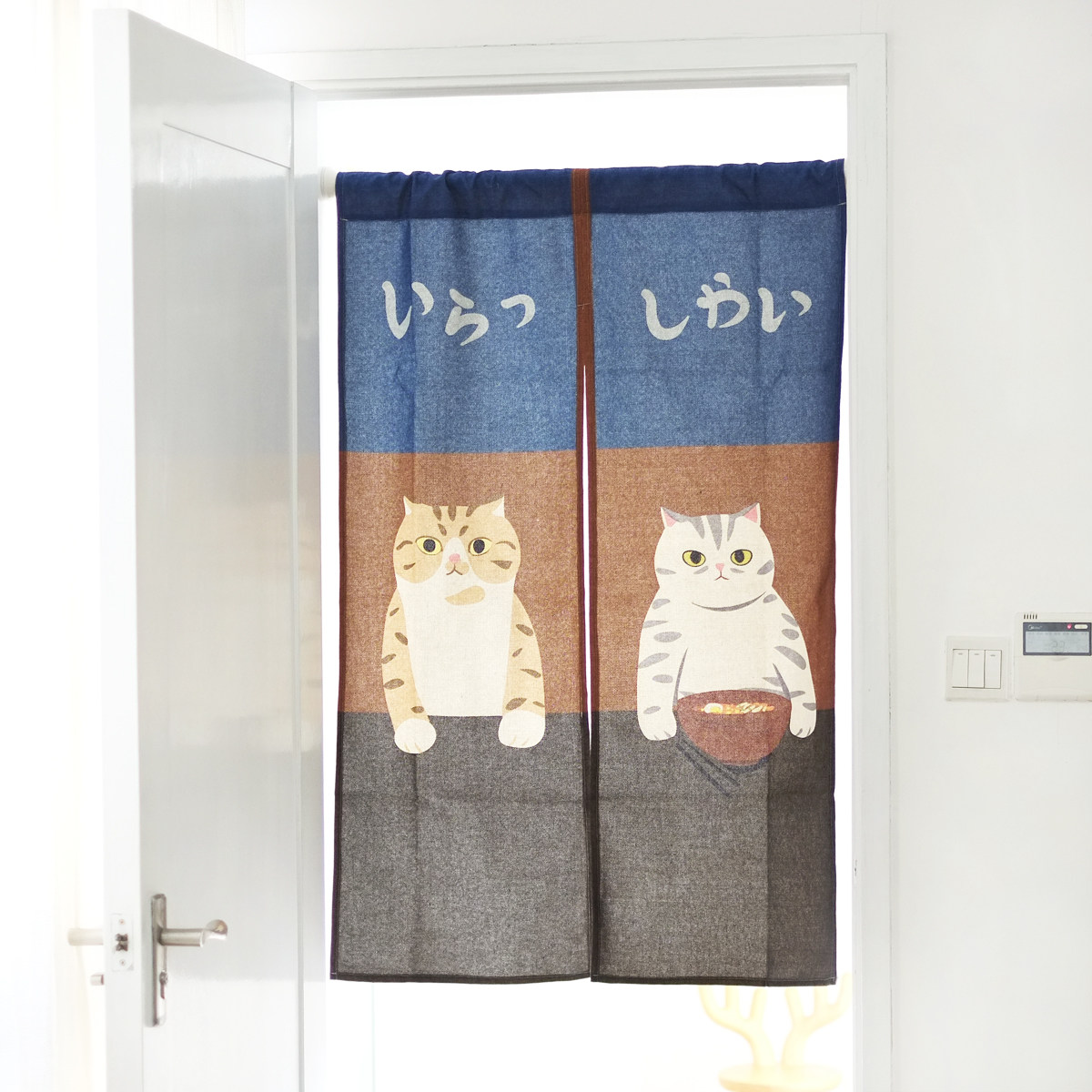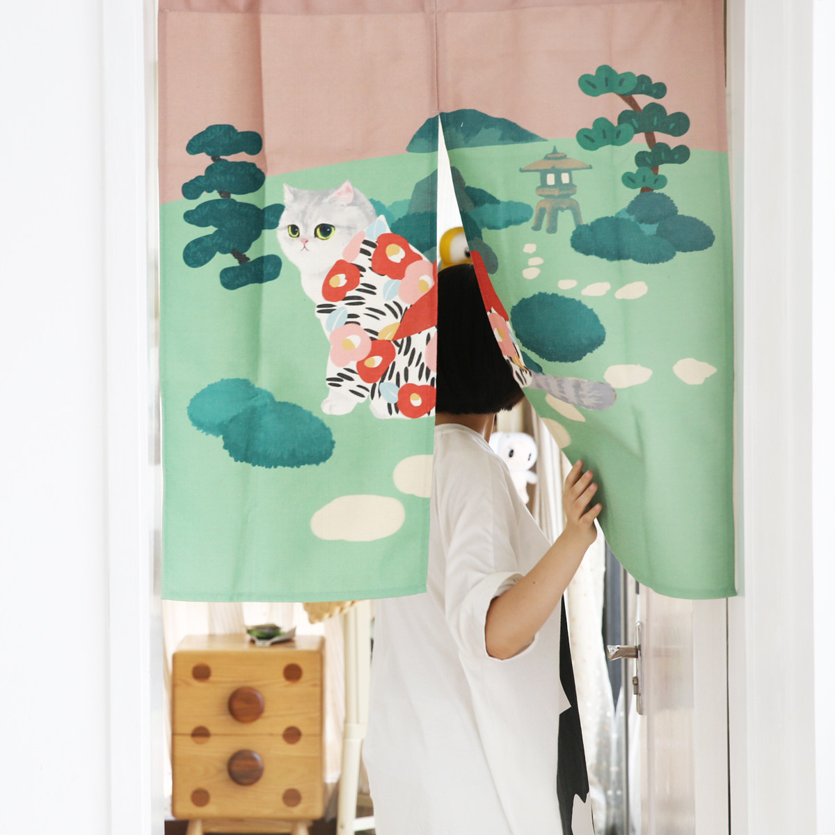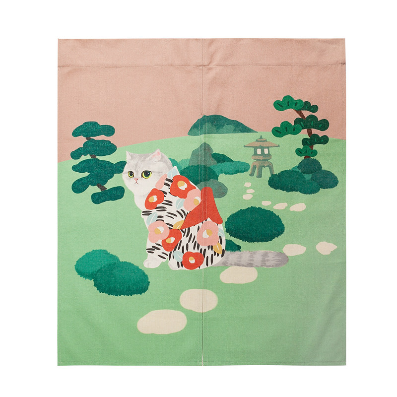 Miaoji MEWJI original cat illustration Japanese-style cotton and hemp door curtain fabric art partition Fengshui curtain five types without punching