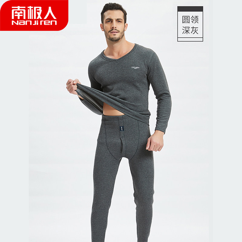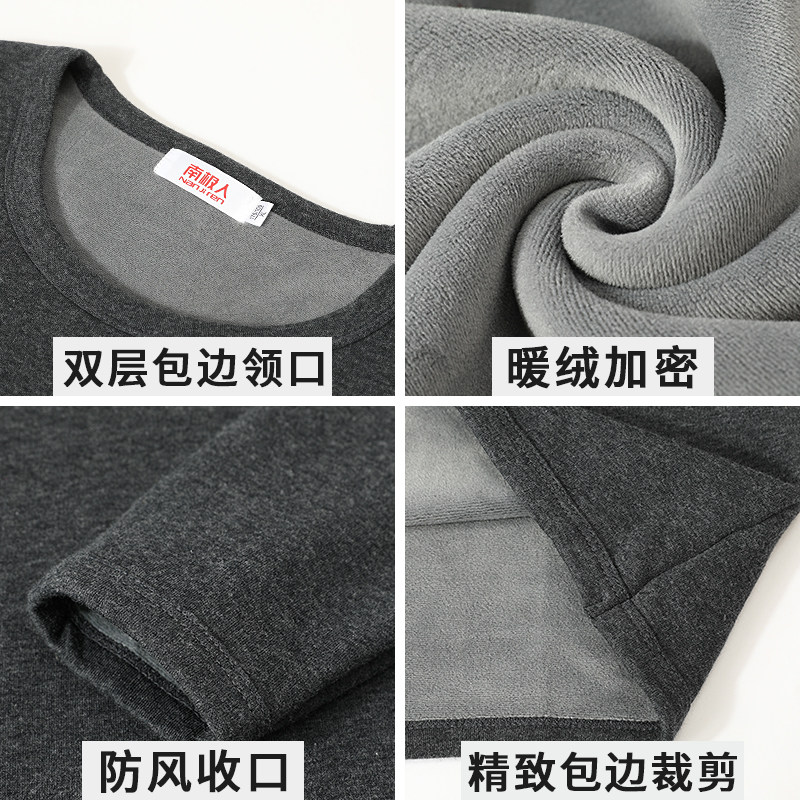 South Pole men's men's warm underwear men thickened with velvety autumn and winter autumn clothes sanitary pants pure cotton suit Youth cotton sweatshirt