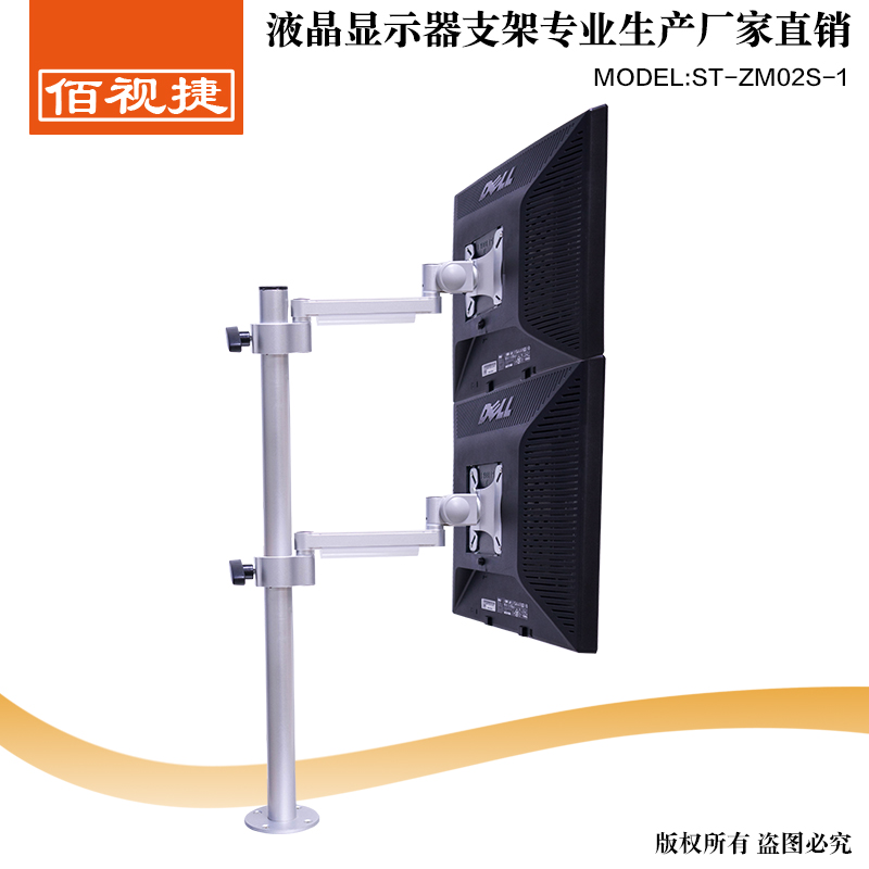Bai Shijie brand upper and lower double screen section telescopic arm computer LCD monitor bracket aluminum alloy material silver