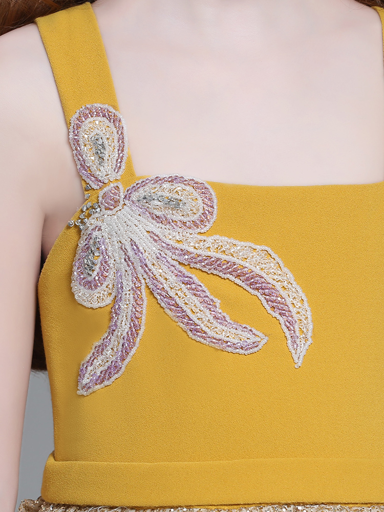 Orange-coloured sprain gold sequin hand-drilled by hand