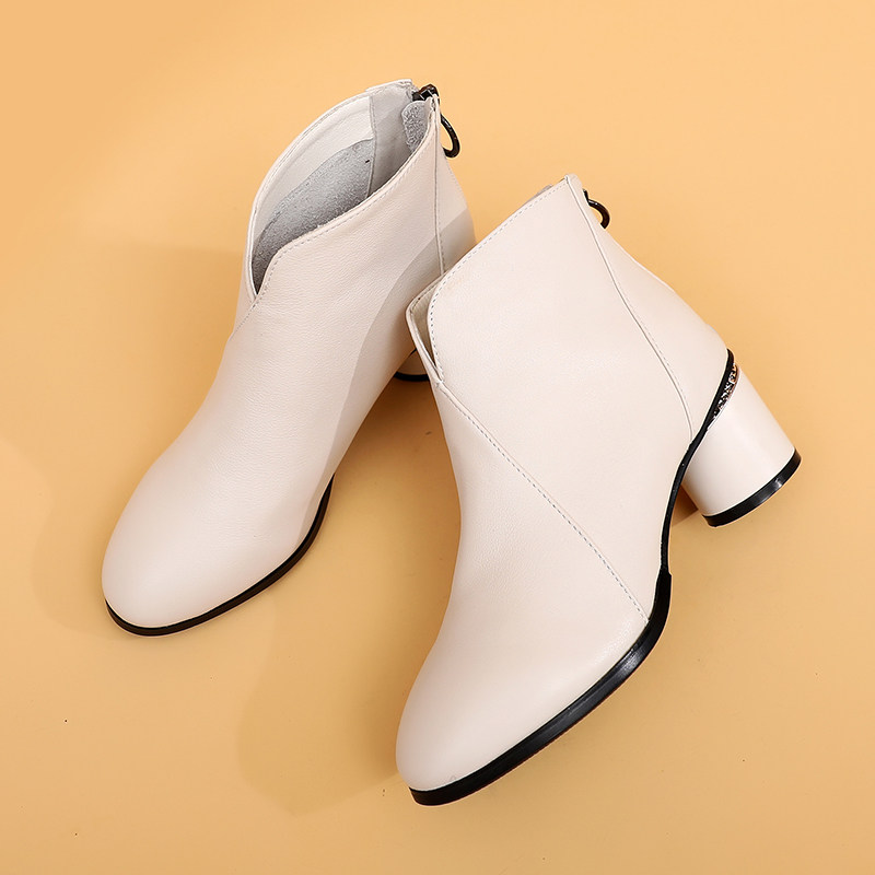 Short boots women's autumn 2020 new thick heel Martin boots women's single boots leather boots short tube nude boots middle heel all-match women's boots