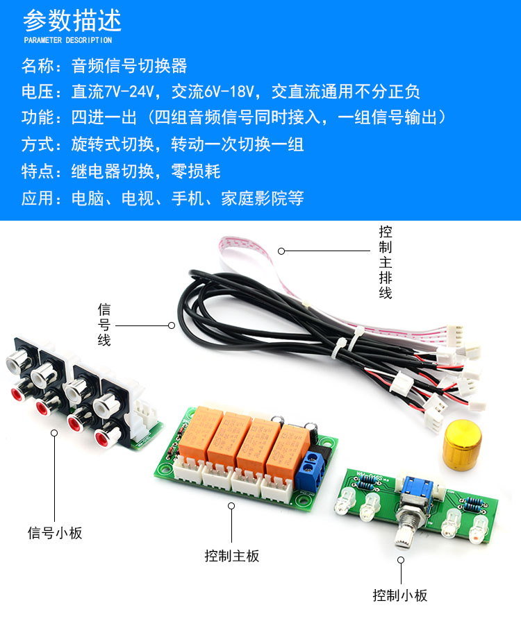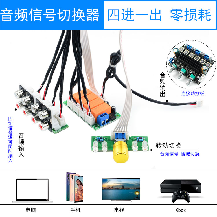Audio input switchboard Four-way audio source switchboard Audio signal input switchboard switching relay