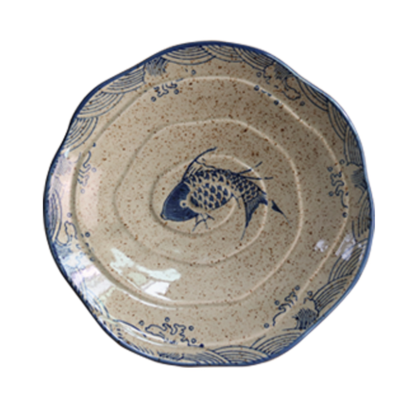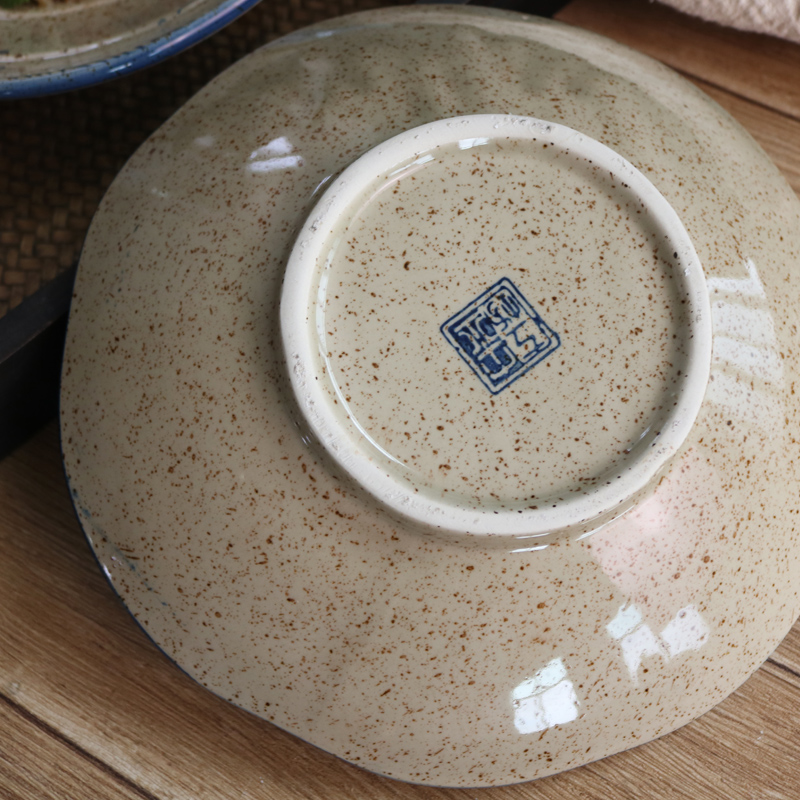 Japanese-style creative retro threaded ceramic bowl series tableware Household plate Rice bowl Western plate Salad plate