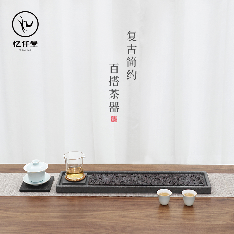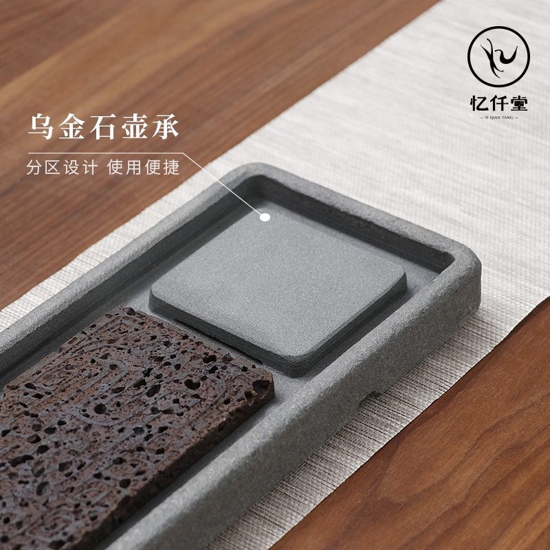 Yiqiantang Gongfu tea set Simple black gold stone head tea tray Drainage large stone tea table Japanese dry tea tray