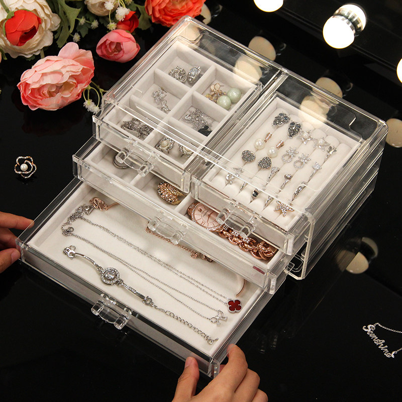 Large Capacity First Accessories Box Earrings Ear-pin ring Necklace Watch Ornament Containing box finishing shelf Jane approximately anti-dust