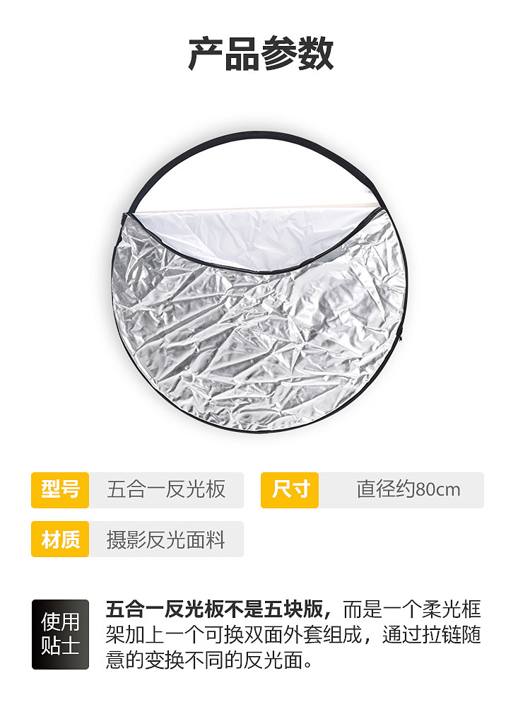 80cm five-in-one photographic reflector folding portable 5 color round fill light block light hitting light flex board photo equipment portrait shooting absorbing gear light shading version mini small light board