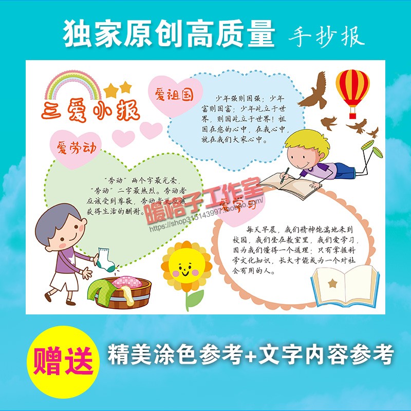 Three-three love themed handmade manuscripts template primary and middle school students love learning to love labor and love motherland hand-painted tabloids