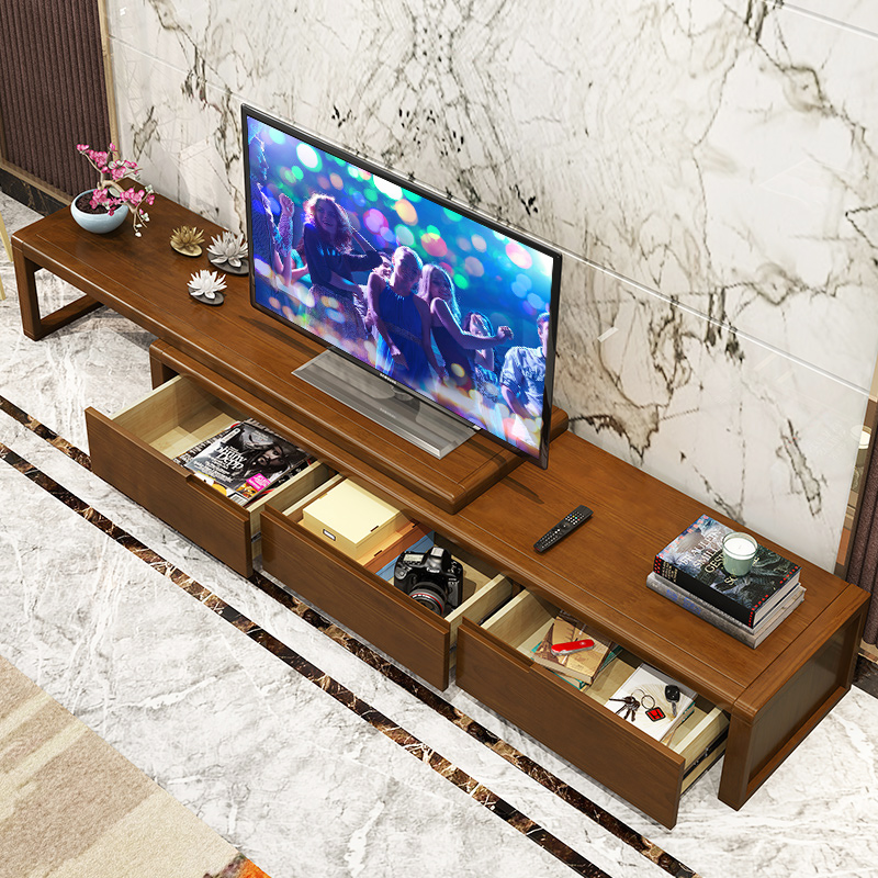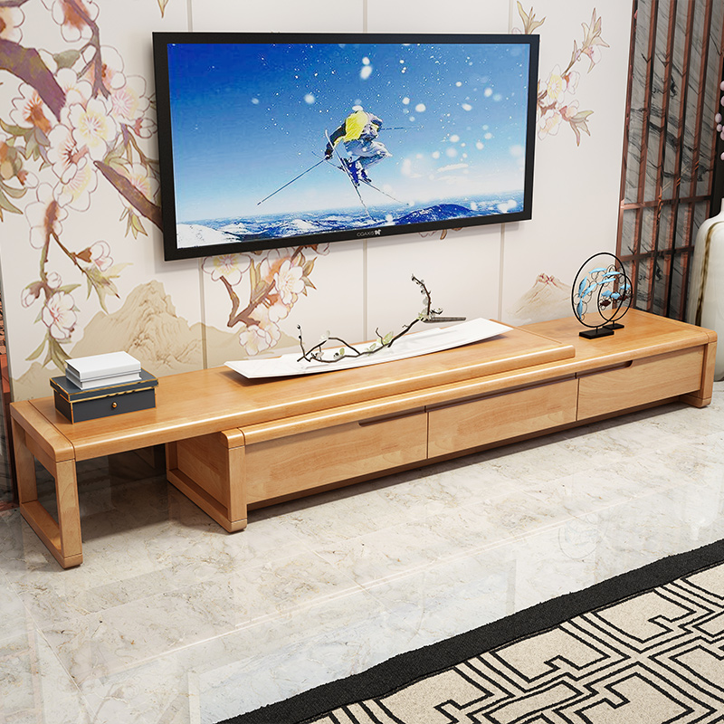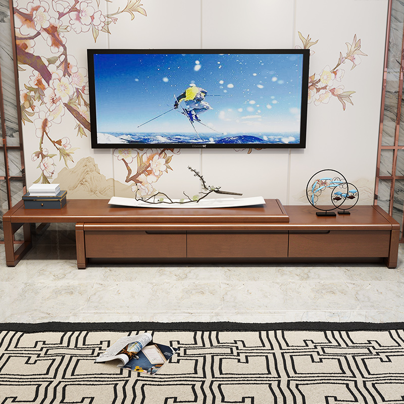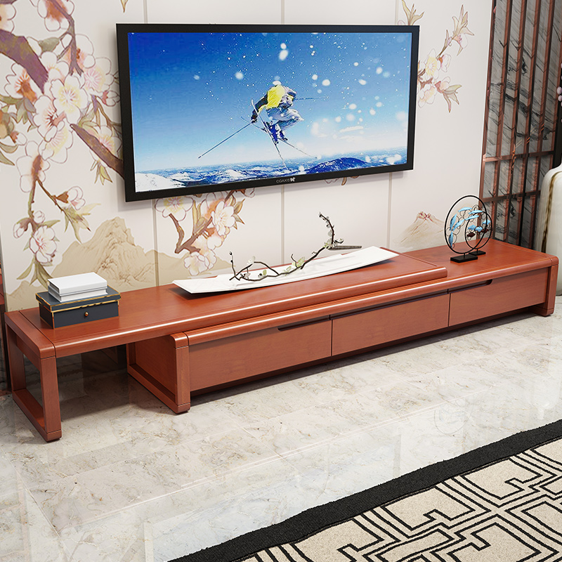 New Chinese solid wood TV cabinet Tea Table Combination Modern Minimalist telescopic Living room Storage furniture Furniture Small type of ground cabinet
