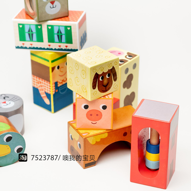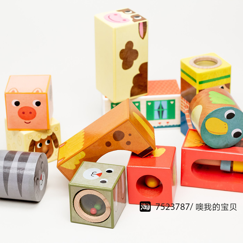 French vilac infant light wooden rocking bell stacked baby building blocks sound alarm Sensory Puzzle Children Toys-Taobao