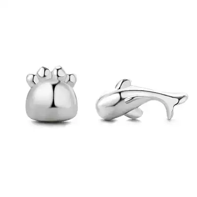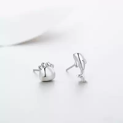 Flower shadow designer original fish and bear paw ear needle female sterling silver simple small cute personality asymmetric small earrings
