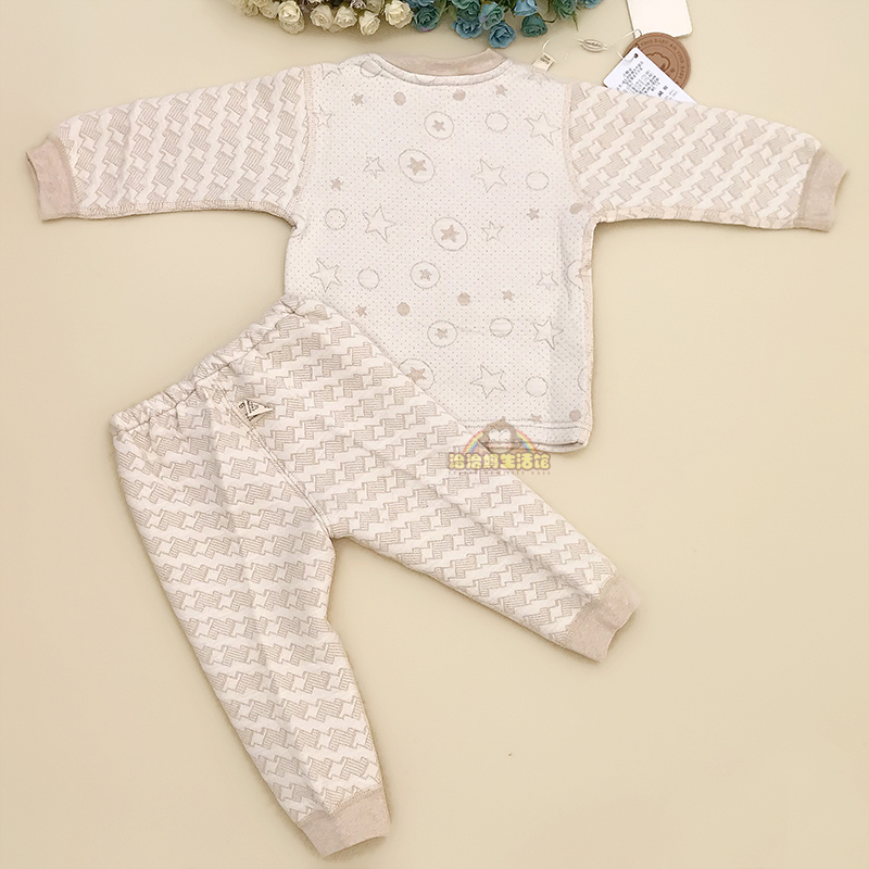 Anyingbaby autumn and winter men's and women's treasure clip silk jacquard set baby children's colorful cotton ribbed collar half-open chest suit