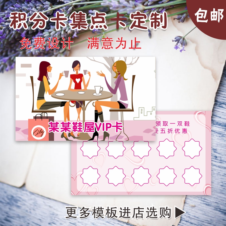 Milk tea drink shop points card set cup card printing set stamp printing drink exchange card trend free design