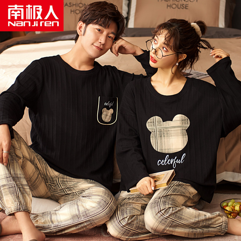 South Pole Lovers Sleepwear Spring Autumn Long Sleeves Pure Cotton Korean Version Cute Male Lady's Home Conserved Autumn Winter Extras Suit