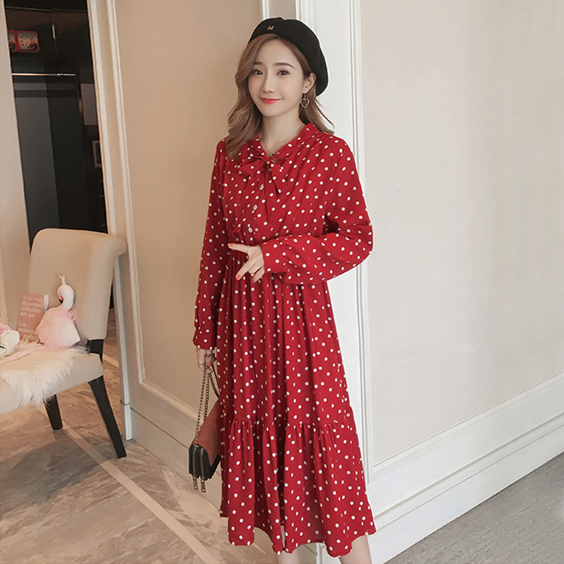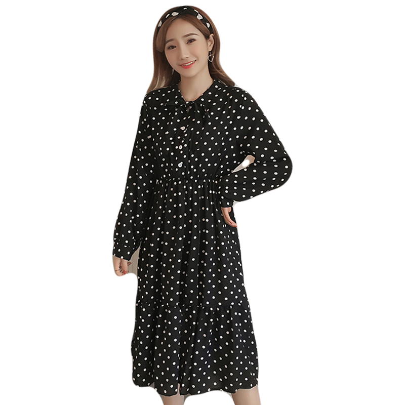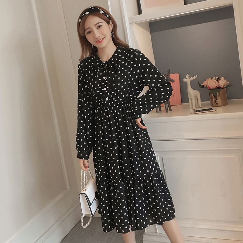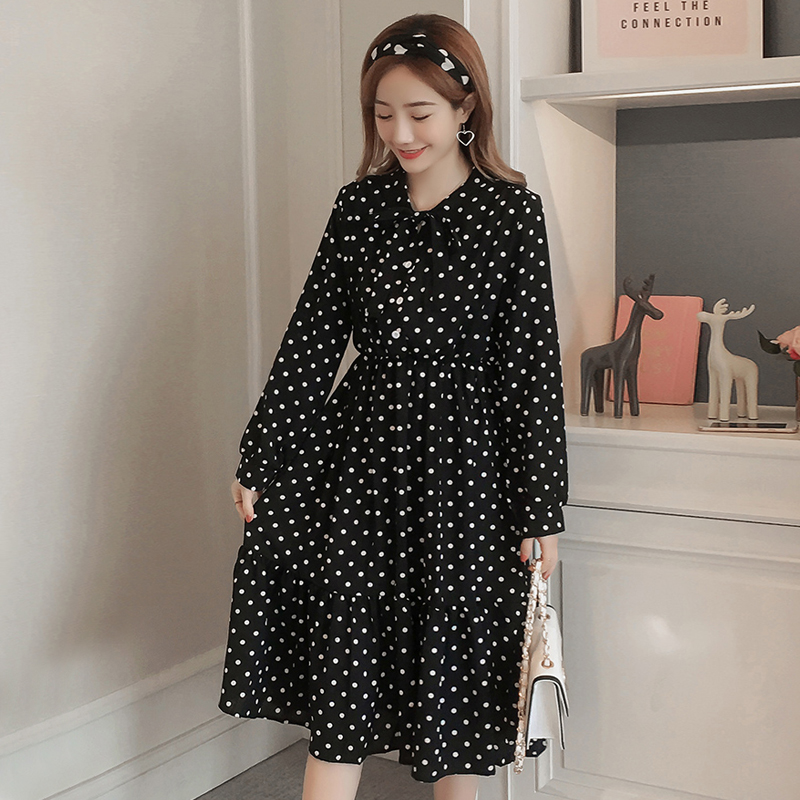 Pregnant women spring a-line long dress large size loose fashion 2021 new spring spring long sleeve wave point chiffon dress