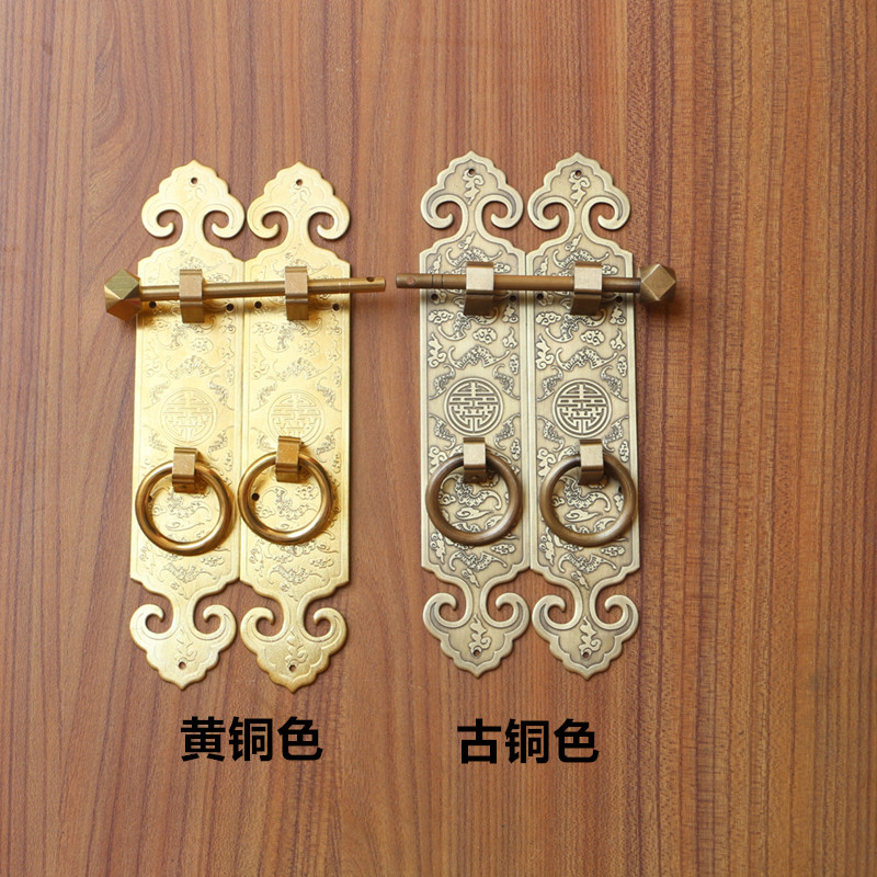 Chinese imitation antique pure copper cabinet door straight strip handle wardrobe bookcase door lock head handle overall cabinet hardware copper handle