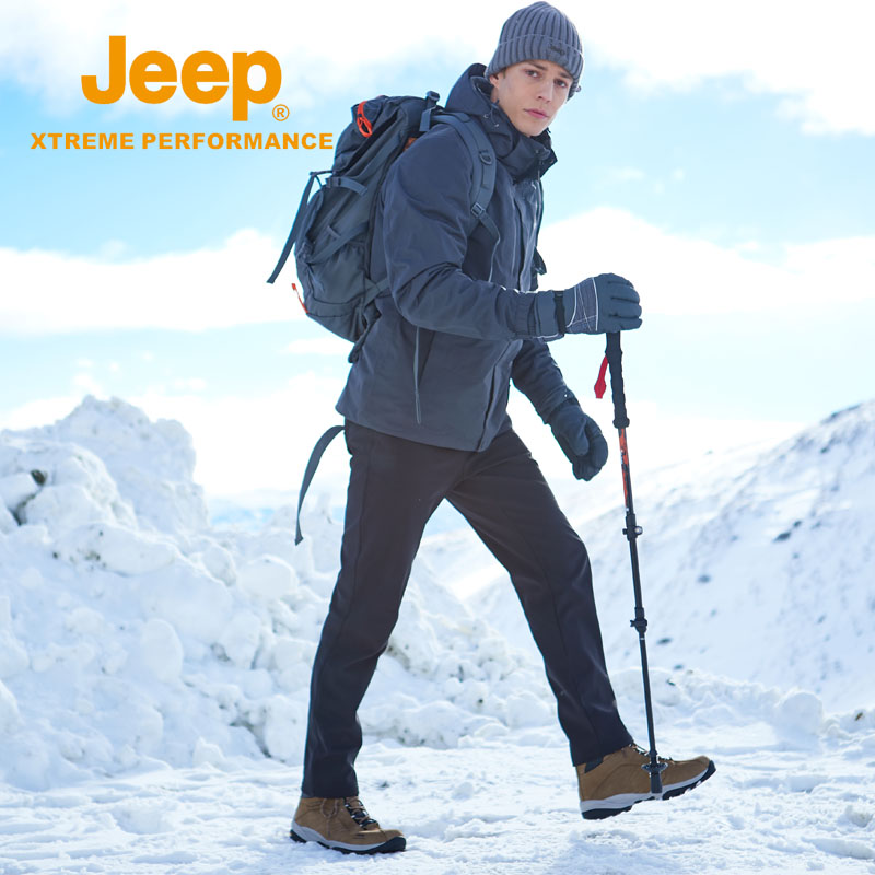 Jeep Gipuga Suede Thickened Punch Pants Men Winter Waterproof Grip Suede Pants Outdoor Soft Shell Windproof Pants Men