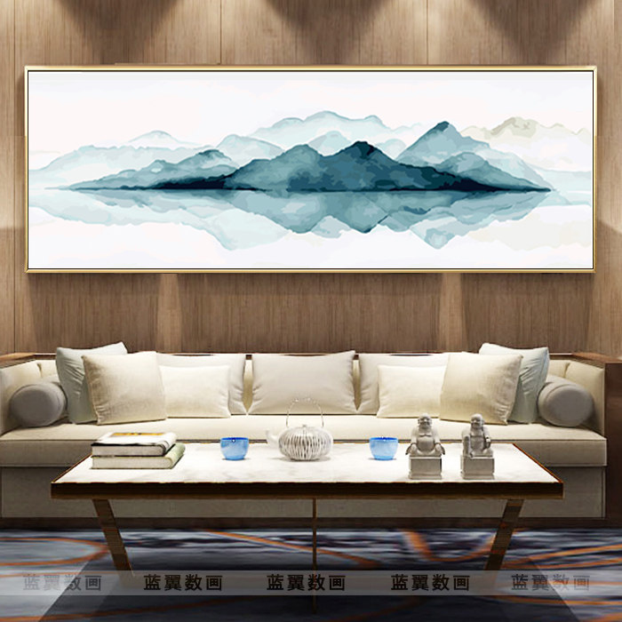 New Chinese horizontal version diy hand-painted digital oil painting freehand Zen living room bedroom decoration painting landscape ink landscape landscape