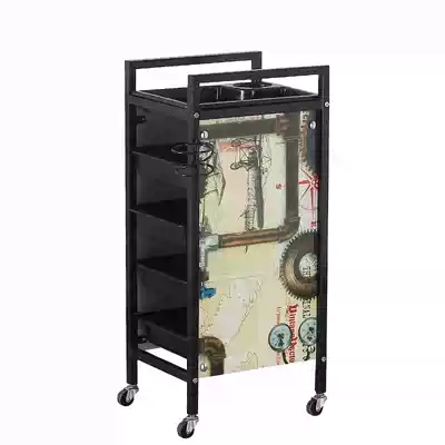 Hairdressing cart Beauty tool cart Hand pull storage shelf Baking oil Hair coloring perm gallery bar car Retro car European style