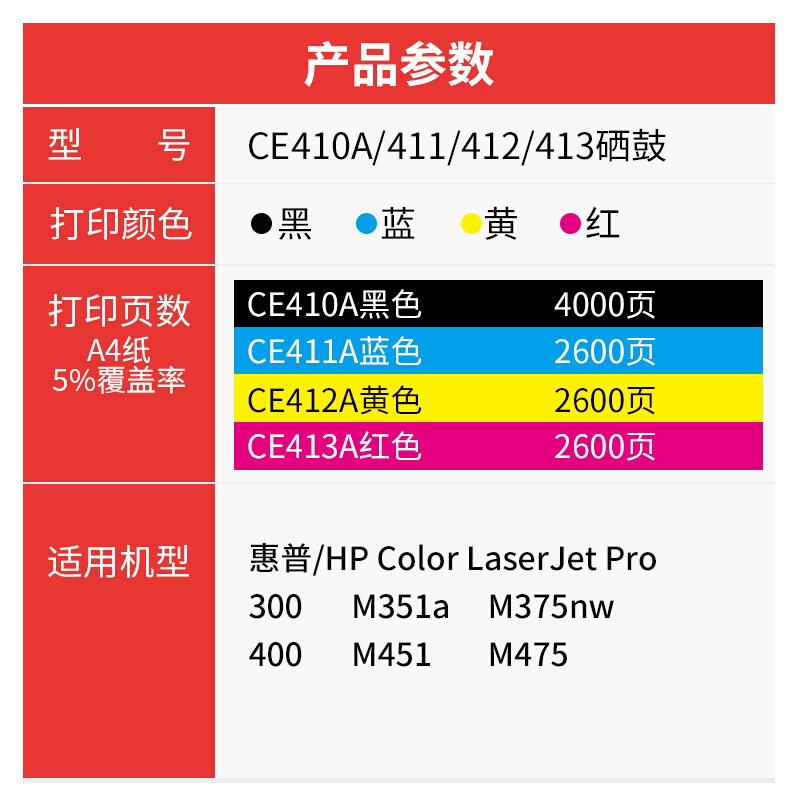 (SF)Suitable for easy powder CE410A toner cartridge 305A four-color ink cartridge Powder cartridge HP printer M451NW HP300 HP400 M351A M37