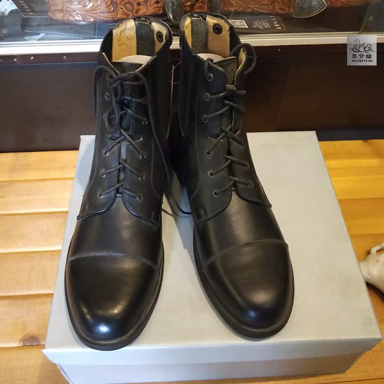 Head Layer Equestrian Bull Leather Short Boots Front Lacing rear Laced Horse Back Edge Horse