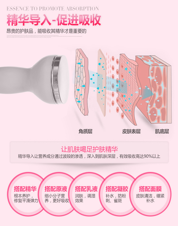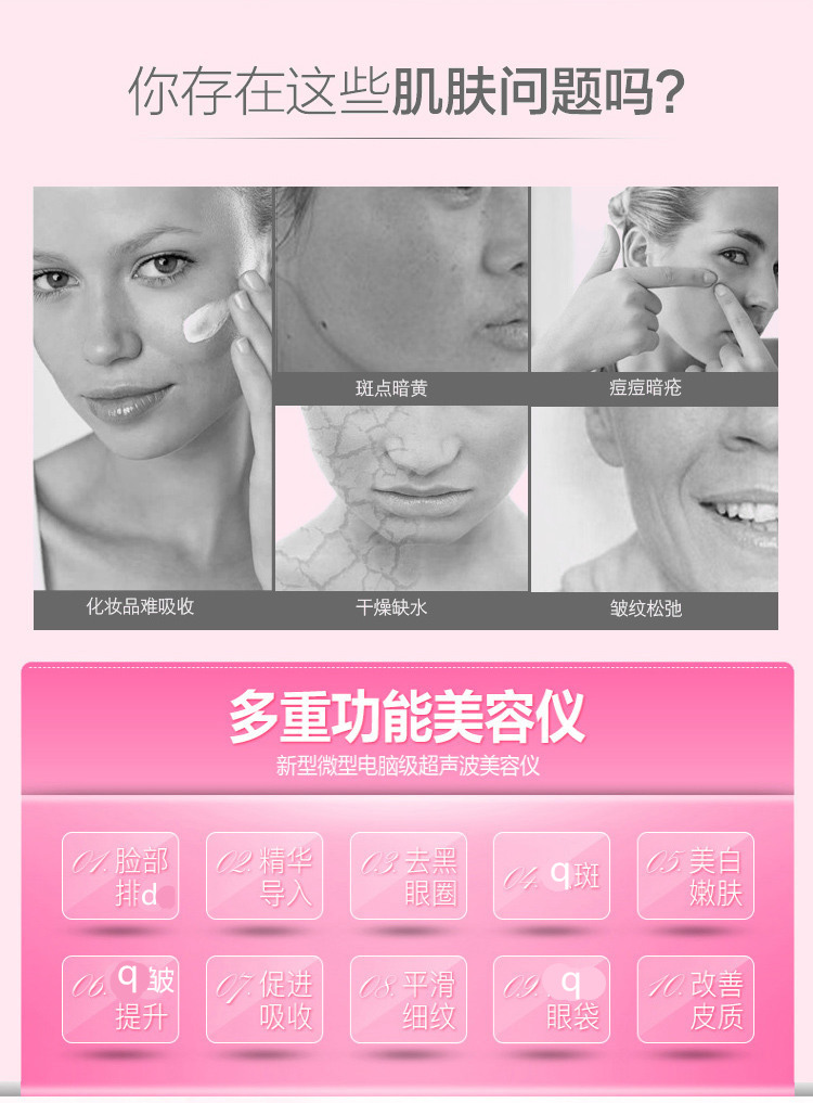 Ultrasonic beauty instrument facial cleansing, detoxification, lead and mercury, thin face, anti-wrinkle and beautifying skin, household facial import and export instrument
