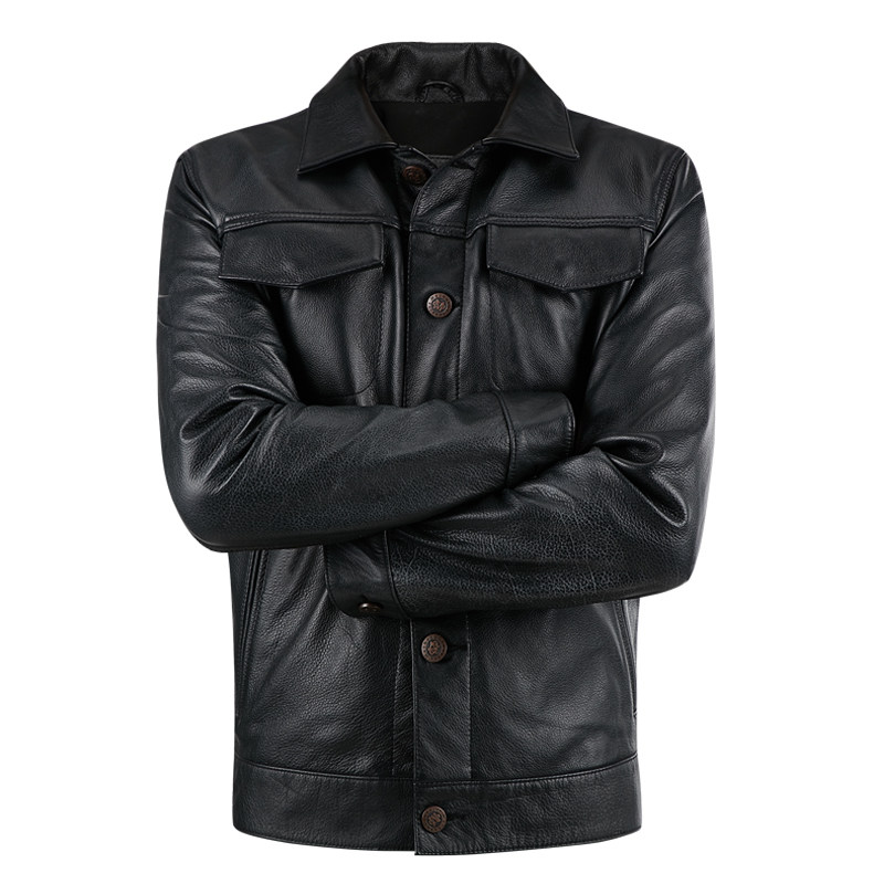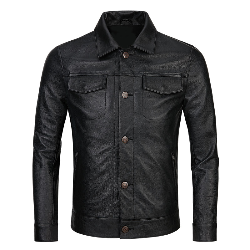 Ammeri Kainen Denim Jeans Genuine Leather Leather Clothing Male headman Bull Leather Locomotive Short leather jacket jacket jacket