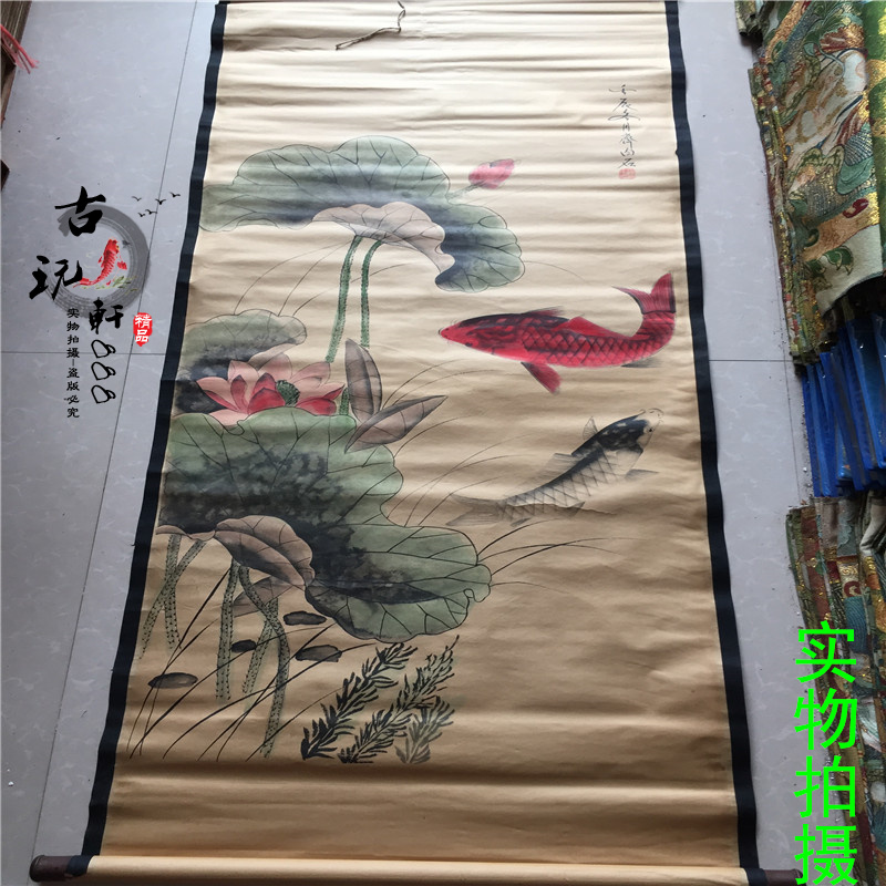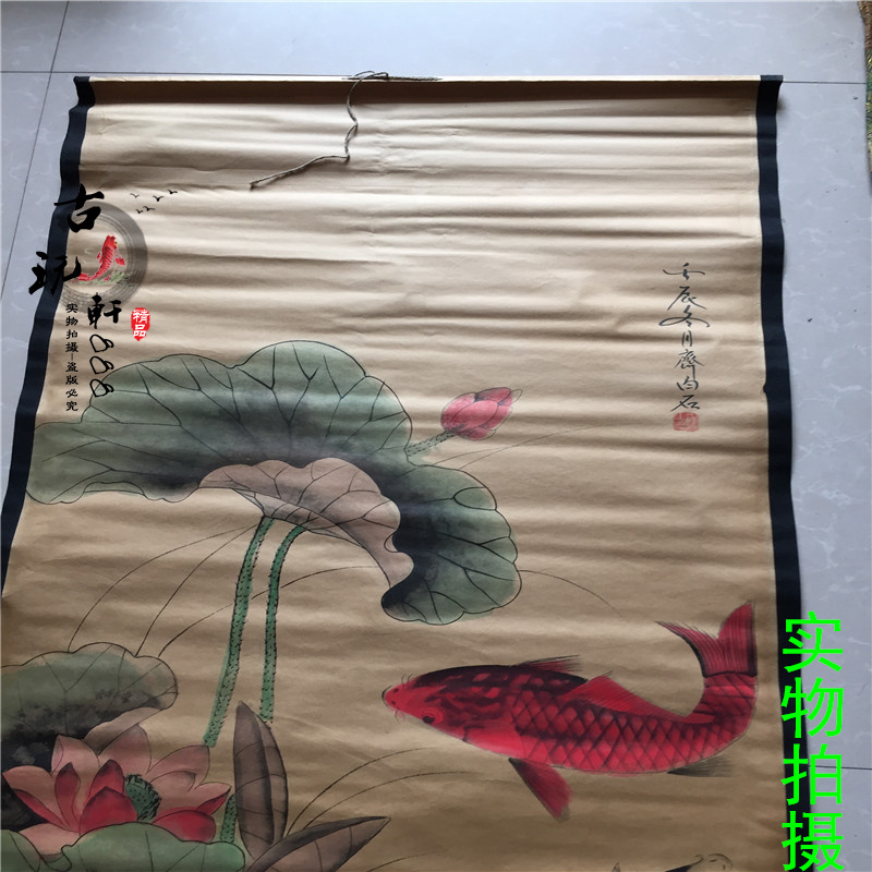 Antique Making Old Character Painting Country Painting Ancient Painting Celebrity Calligraphy And Landscape Man Painting Living Room Office Decoration Hanging Painting Two Fish Drawings
