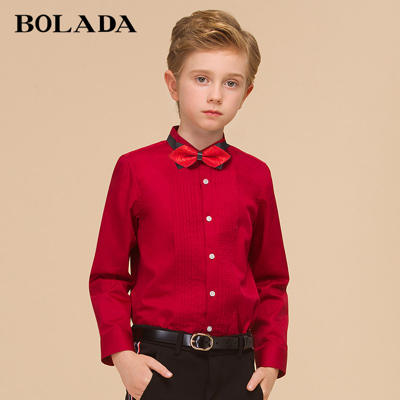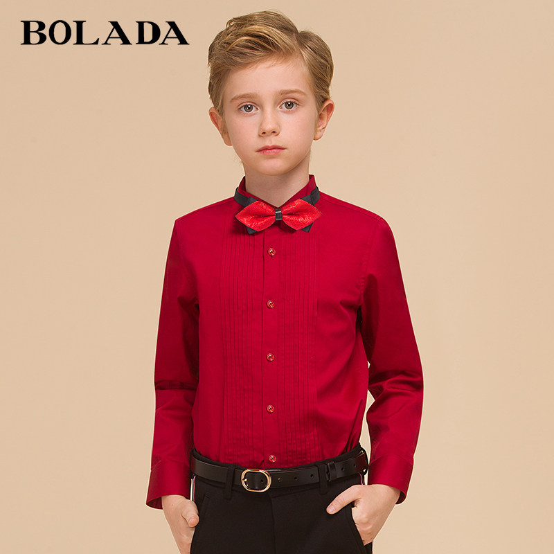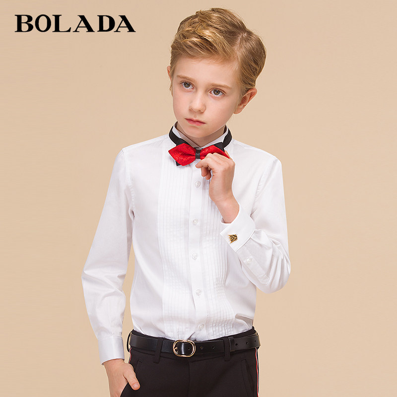 bolada boy dress shirt long sleeve children swallow collar middle big children flower girl dress British white shirt spring
