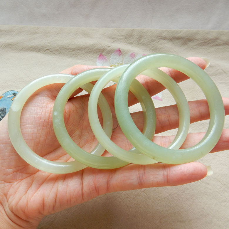 50-55mm(Special Offer)Natural Hetian jade bracelet Qinghai material green white jade green jade small circle jade bracelet jewelry