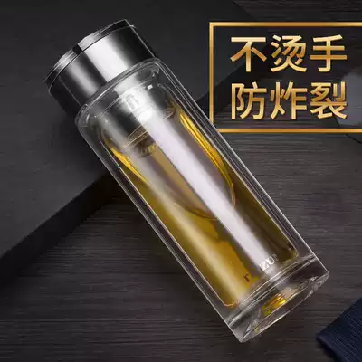 Taizun glass water cup Men's portable accompanying cup Household tea double-layer crystal teacup Women's cup Office simple