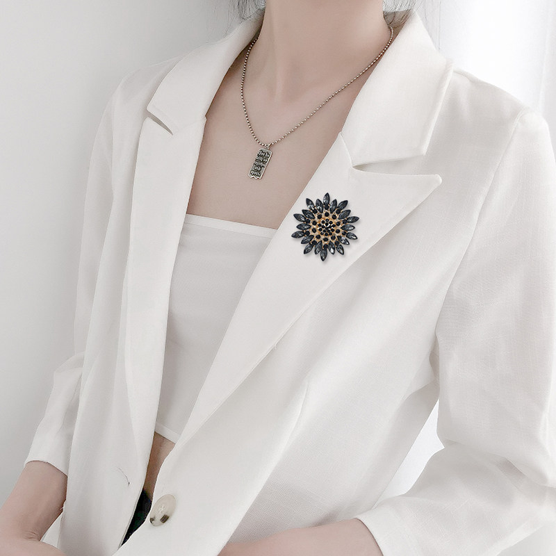Japan and South Korea crystal brooch women's high-end anti-lost minority creative corsage design fashion all-match pin with accessories