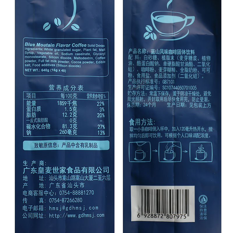 Huangmai Family Blue Mountain Coffee Instant coffee Extra strong refreshing anti-sleepy coffee Stay up late student drink