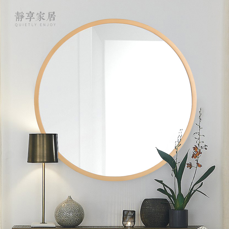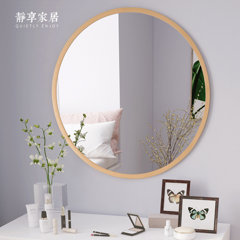 Solid wood makeup mirror Nordic makeup mirror Hand wash powder room mirror Bedroom wall mirror Bathroom mirror Large round mirror