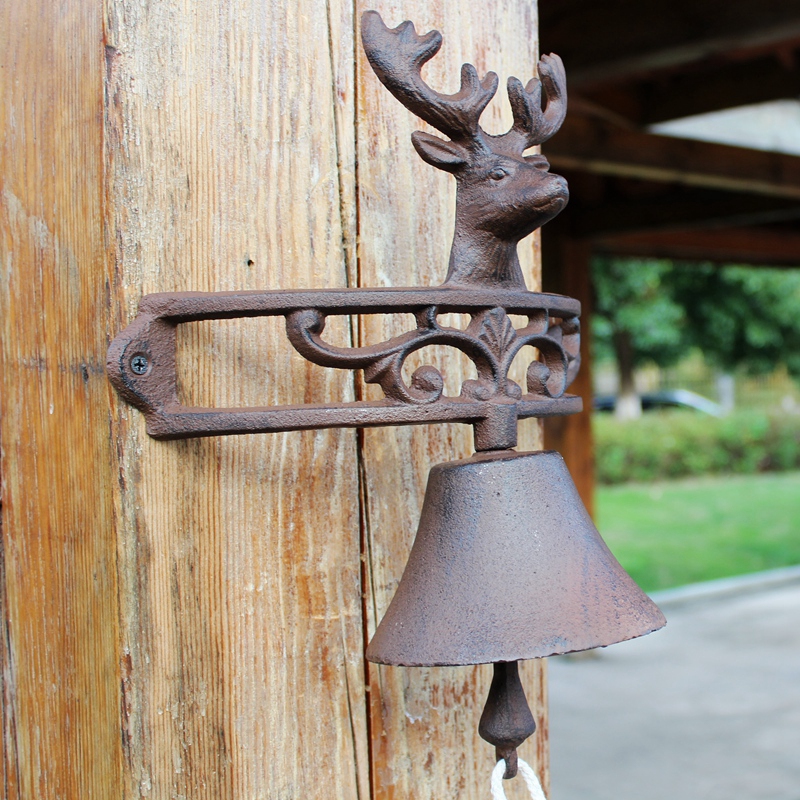 Eurostyle Auspicious Deer Head Retro Cast Iron Doorbell Handbell Bell Garden Shop Decoration Wall-to-wall Opening Gift-Taobao