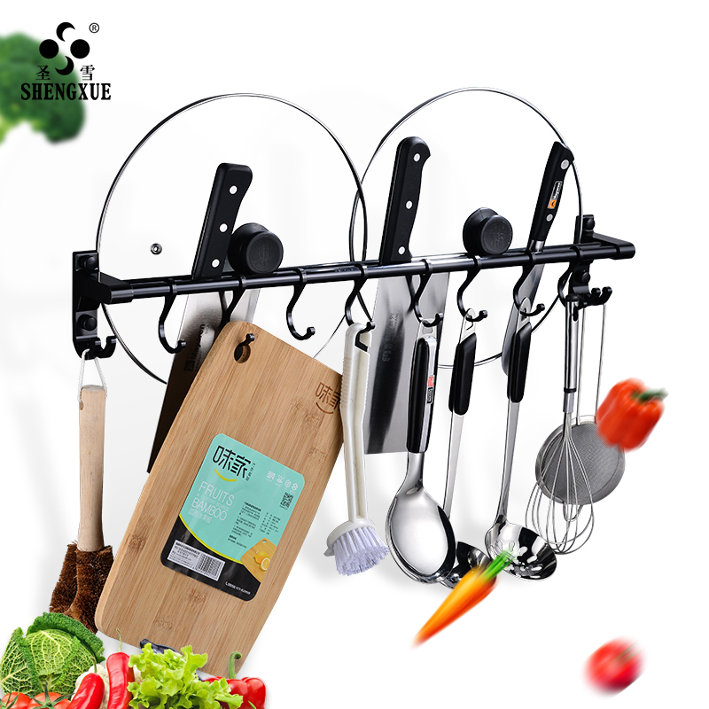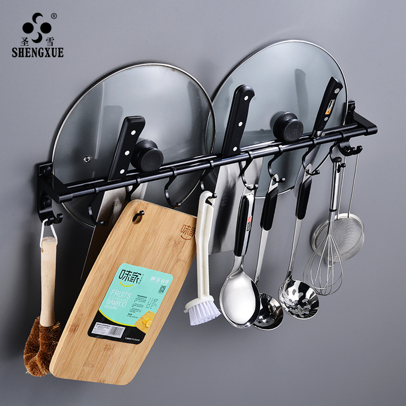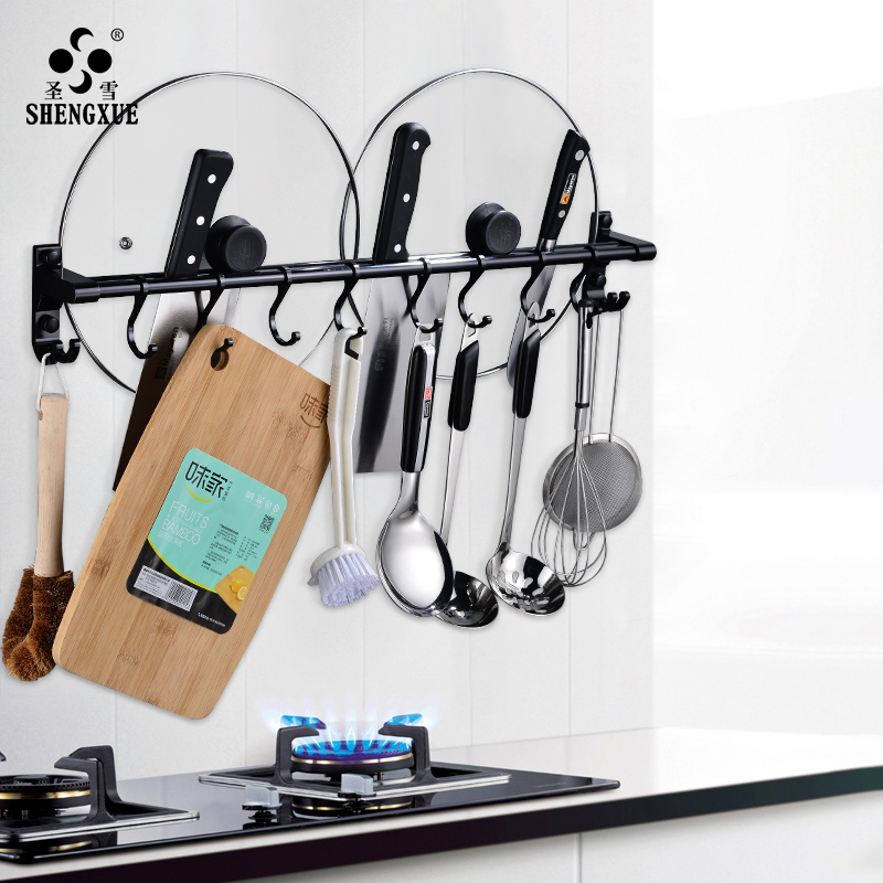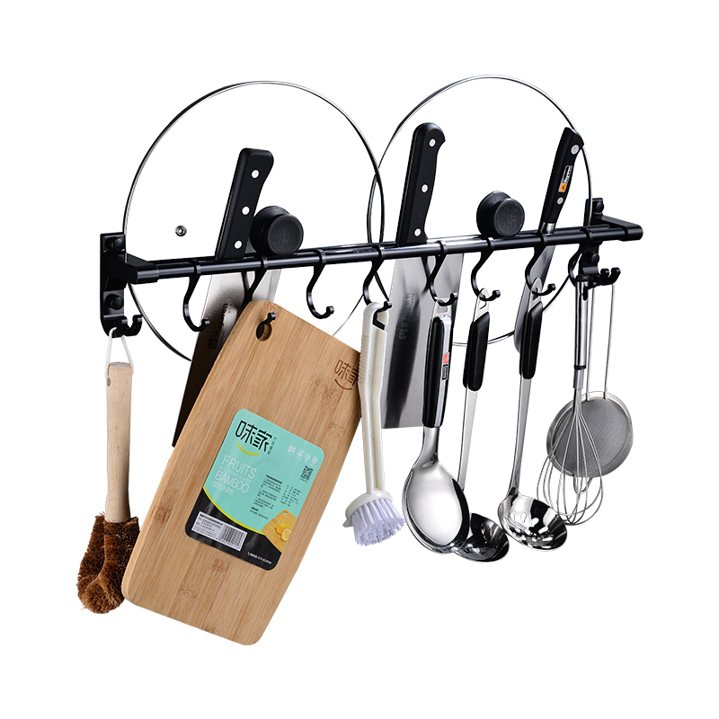 Free hole black kitchen hanging rod shelf wall-mounted kitchenware hardware kitchen and bathroom hook pendant knife holder space aluminum