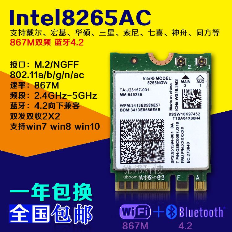 4-generation built-in antenna external antenna external antenna bezel AX200 20 years new (6 generation WiFi) 9560AC Universal version NGFF M2 (Key E