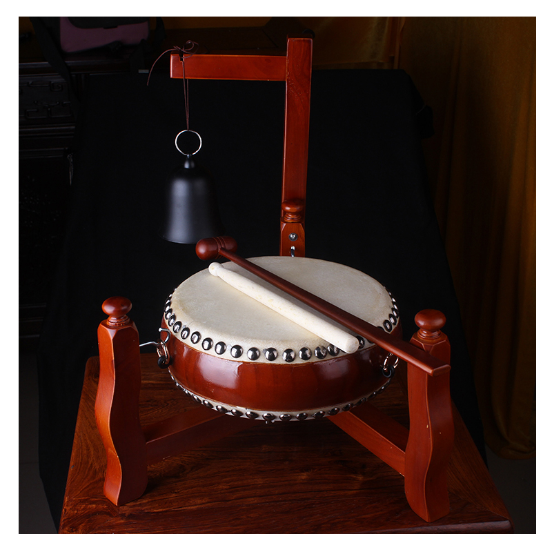 Temple instrument bell drum bell drum instrument drum foldable solid wood drum rack emperor bell drum method will have drum wood fish