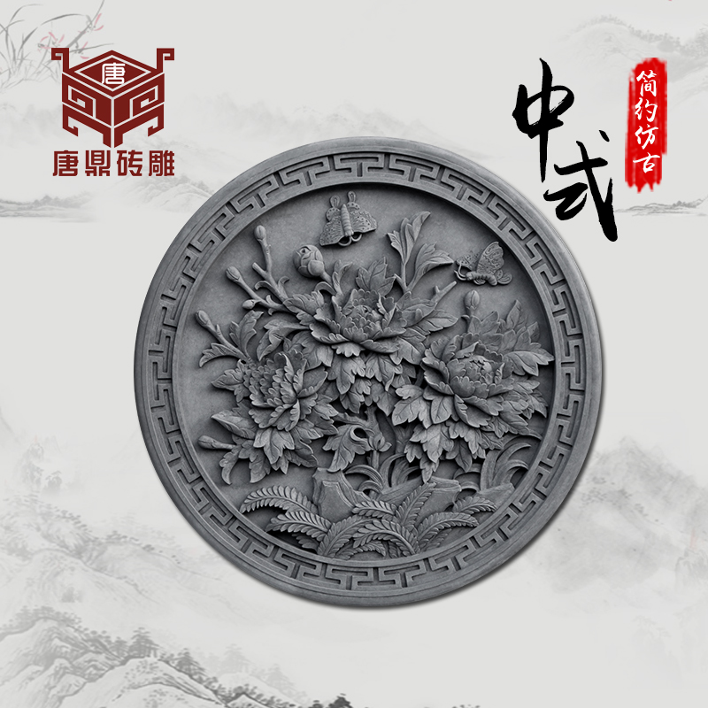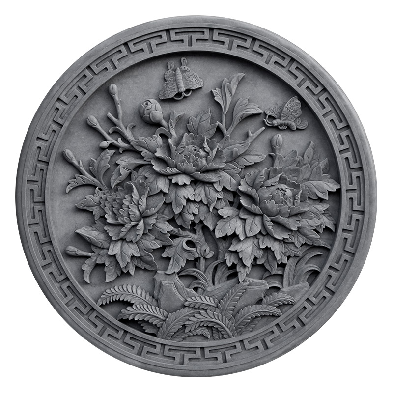 Tang Ding Brick Sculpture Chinese Antique Courtyard Green Brick Relief Emblem Pie Wall Photo Wall Rich peony 80cm Garden decoration