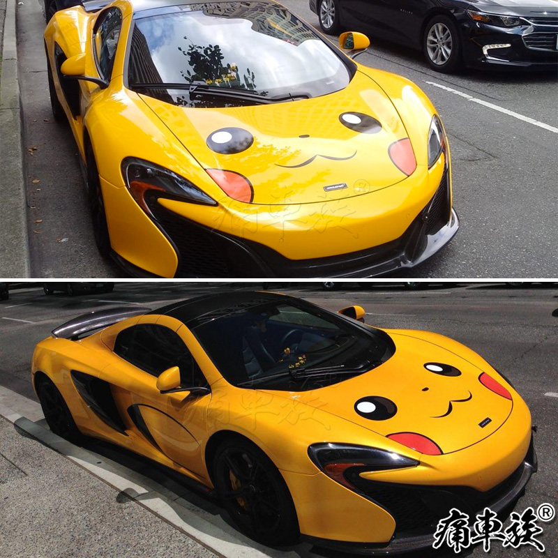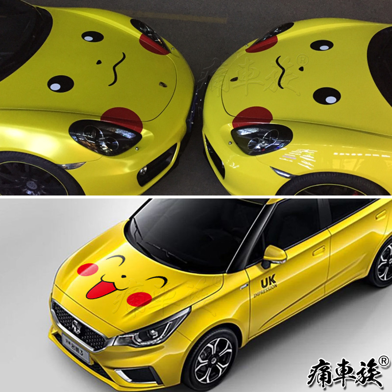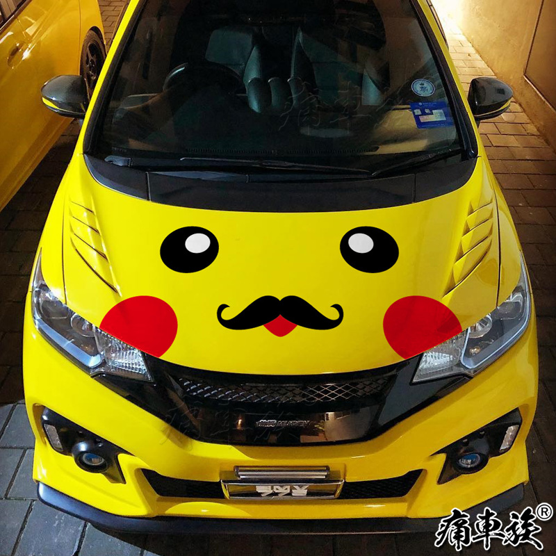 Pikachu car stickers cartoon smiley expression car head machine cover car stickers Engine hood decoration sticker art