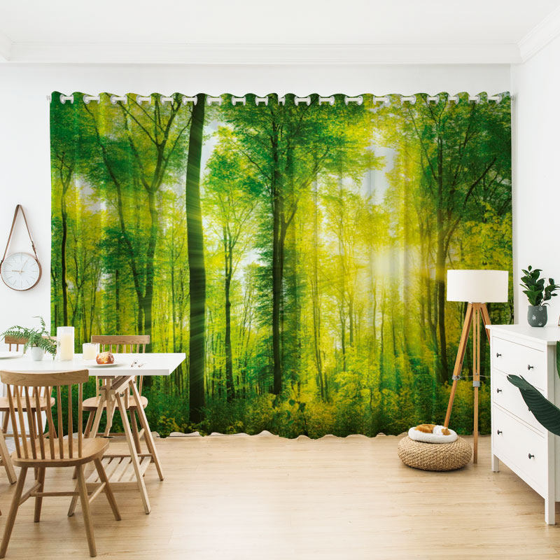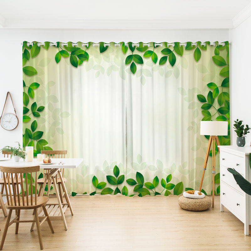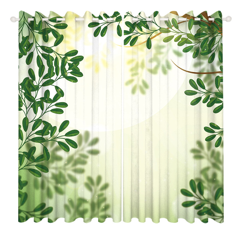 Customized modern American Nordic small fresh curtains early morning green leaves boy's bedroom living room window